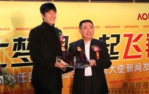 網易2008奧運報道 11月22日訊 在感恩節這天,飛人劉翔牽手“中國鞋王”王振滔領軍的奧康集團,正式成為奧康奧運大使,此外他也成為公益活動奧康·奧運圓夢行動特別形象大使。