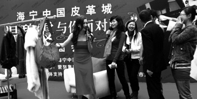 “請任主任用三句話來概括海寧皮革城,溫碧霞進行解讀……”任有法稍加思索很快脫口而出。“我概括的第一句話是海寧及海寧中國皮革城是時尚人士的首選地。”溫碧霞說:“我來皮革城,就注意到這里很漂亮,很大氣,有適合各種人士來選擇的漂亮服裝!”接著,任有法又分別以“海寧及海寧中國皮革城是服裝設計師的搖籃和時尚創造者的樂園”和“海寧是全球成熟采購商和代理商必到之處”進行了概括。溫碧霞說,現在的名牌很多,關鍵是要找到適合自己的,適合自己的、自然的就是最美的。