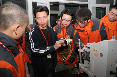 在實驗室,決賽選手們才知道,每一件設計產品還要在極其專業的實驗設備上經過上萬次的"行走"實驗檢測和"彎折"實驗檢測,才能付諸生產……