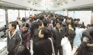 2007年全年,濱海人才市場組織大型招聘會23次,2032家企業參加招聘,提供就業崗位9628個,全年招聘會登記求職人員27195人,招聘崗位、登記求職人數較去年上升了10%和18.3%。與此同時,全年職位供求比為2:5(崗位數為2,求職人數為5),與同期相比較穩定。全年統計數據顯示,部分專業雖較熱門,但供求比也相對較大。