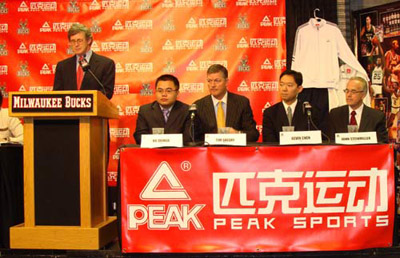 美國密爾沃基時間2007年12月19日上午10點,匹克集團與 NBA雄鹿隊(易建聯所在球隊)在布拉德利中心聯合召開了雙方獨家戰略合作的新聞發布會。出席發布會的有NBA官方代表凱文-陳、密爾沃基商會主席蒂姆-西漢、雄鹿隊總經理拉里-哈里斯、雄鹿隊總裁榮-沃爾特等官員,發布會上,匹克集團總經理許志華與雄鹿隊總經理拉里-哈里斯先生共同宣布:從本賽季開始,雙方將正式展開獨家合作。匹克集團成為第一家與NBA雄鹿隊合作中國知名運動品牌。繼休斯敦火箭隊與匹克合作后,匹克再次出擊與密爾沃基雄鹿隊達成了長期的戰略合作伙伴關系。這是自11月與NBA締結戰略合作關系以來,匹克的又一震撼業界的成就。