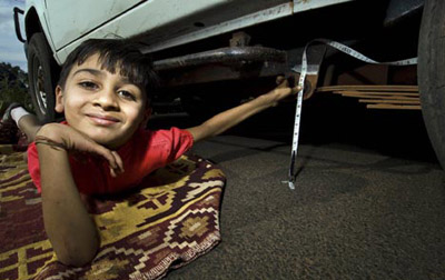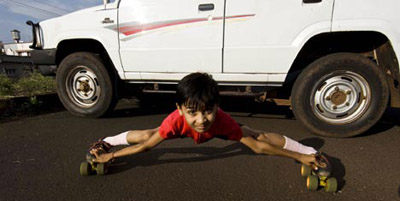 據英國《每日郵報》今日報道,按常理來說,穿旱冰鞋從底下鉆過汽車似乎是不可能的,但印度6歲男孩阿尼克特·陳達克卻做到了這一驚人舉動,創了一項非官方"練獄溜冰"世界紀錄——穿旱冰鞋45秒內一口氣順利鉆過57輛汽車。