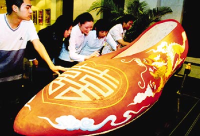1999年,錢金波發現具有5000年歷史的中華鞋文化長久以來很少有人關注,于是,公司上上下下開始留心收集上到遠古下至民國的各式鞋履,并把鞋與文化、鞋與戲曲、鞋與歇后語、鞋與笑話通通制成“鄭人買履”、“隔靴搔癢”、“臨時抱佛腳”等雕塑,陳設在專賣店里,進行文化促銷。