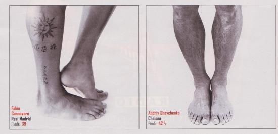 左邊是:卡納瓦羅的39碼腳 右邊是:舍甫琴科的42碼半腳