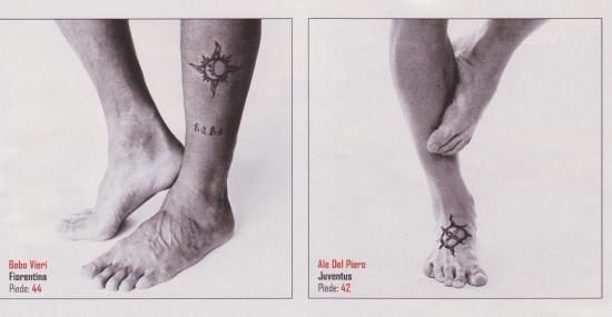 左邊是:維埃里的44碼腳 右邊是:皮耶羅的42碼腳