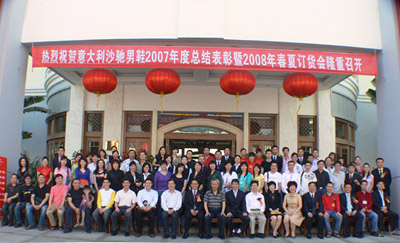 椰風海韻喜迎八方嘉賓,奧運商機催生無限事業(yè)。2008年元月13-17日,以“觸摸奧運脈搏,破譯財富密碼”為主題的意大利沙馳男鞋2007年度總結表彰暨2008年春夏訂貨會在美麗的海南三亞隆重召開。沙馳品牌皮鞋登陸中國市場8周年之際的這場盛會得到了社會各界的廣泛關注,品牌中國產(chǎn)業(yè)聯(lián)盟專門發(fā)來賀信,中國行為法學會領導及眾多社會名流專程赴會并發(fā)表講話。