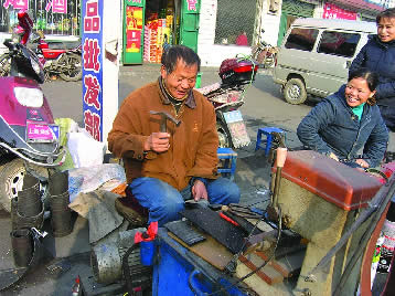 2007年12月28日,新密市劉寨鎮四街街頭,寒風刺骨。杞縣人大代表楊序文領著記者找到了鐵全水的修鞋攤。
