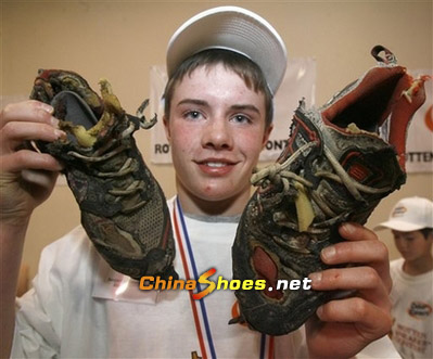 成功的滋味真臭!第33屆全美臭鞋大賽3月18日在佛蒙特州的蒙彼利埃市舉行,15歲男生本·拉塞爾腳上那雙運動鞋“臭”冠群倫奪魁。