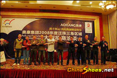 2008年3月20日中國最大民營制鞋企業、北京2008奧運會皮具產品供應商奧康集團在廣東東莞舉行一場“泛珠三角區域大型招商洽談會”。這次招商會無疑也是向業界發出的一個信號:唯有創新變革營銷模式,方能立于不敗。當天來自珠三角區域200余名代理商共同見證奧康集團引領中國鞋業營銷模式的又一次變革。
