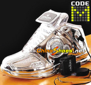 Dada鞋業(yè)最近推出了一款銀光閃閃,名為“代號(hào)M”的運(yùn)動(dòng)鞋。這雙鞋內(nèi)置MP3隨身聽,可將音樂傳送至附贈(zèng)的無線耳機(jī);而當(dāng)使用者在運(yùn)動(dòng)場(chǎng)上進(jìn)行比賽,或是不方便使用耳機(jī)時(shí),音樂可改由鞋子內(nèi)建的揚(yáng)聲器播出。