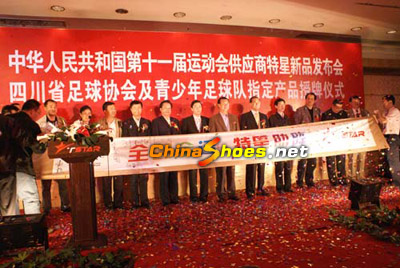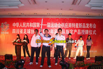 發布會上,四川省足球協會授予特星公司指定產品牌匾;特星公司同時宣布全面包裝四川省青少年足球隊。之后進行了即將面市的特星系列新品鞋服秀。