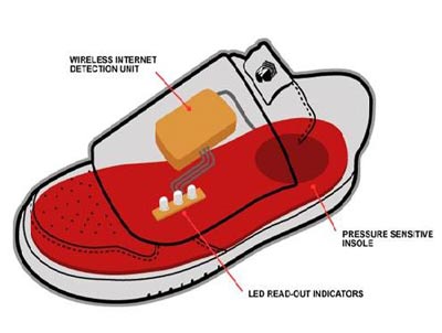 以下是由兩家時尚運動和流行裝備商MSTRPLN和UBIQ共同打造的“高科技”波鞋,名為ASRD,即“AStepintheRightDirection”踏在正確的方向上。何謂正確的方向,有無線網絡的地方就是了。