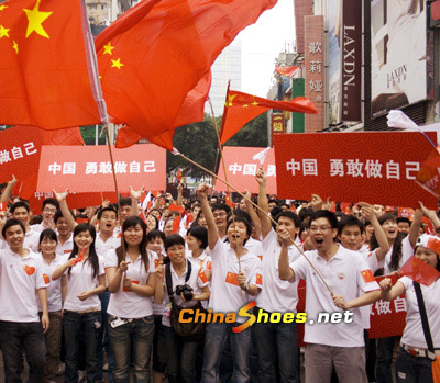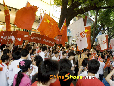 白云國際會議中心,白云山,陳家祠,中山紀念堂,北京路步行街……數以萬計的廣州市民涌向這些地方,揮舞著旗幟,綻放著笑容,“加油北京!祝福奧運!”“中國 勇敢做自己”,他們嘴里不停地喊著,嗓子有些嘶啞,卻匯成一股巨大的聲浪,響得人耳畔發燙。