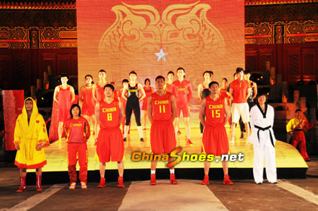 易建聯(lián)、羅微、哈那提等中國健兒展示耐克為中國運動隊打造的競賽裝備