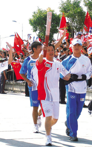 而讓許水深最感動的還是到達終點的那一刻。作為恒安集團的一分子,他參與火炬傳遞的消息早在公司里傳開。昨日上午,公司組織了100名員工在他傳遞路段的終點早早等候著。當他接近終點時,“就聽到有人在喊‘水深、水深’,那時候心情十分激動,渾身更有勁了。”而這群拉拉隊里還站著他的母親,“看到大家為我加油,那一刻我覺得自己好像成了明星。”