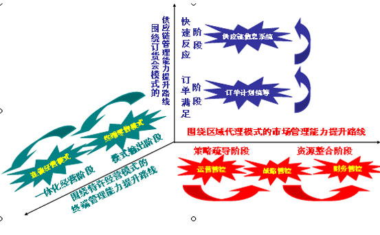 市場管理營銷攻略路線圖的總體方針:先強化典型代理商區域經營管理能力,后提升總部對區域市場督導能力。