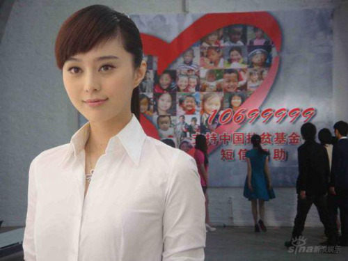 四川地震發生時,范冰冰正陪伴來自四川石渠縣希望小學的孩子們游覽北京,在得知災情后,她第一時間向災區人們表示了慰問。并在13日以個人工作室的名義捐款20萬元人民幣。同時,范冰冰還厚著臉皮號召由她代言的各個品牌和身邊的朋友投入支援災區的行列。
