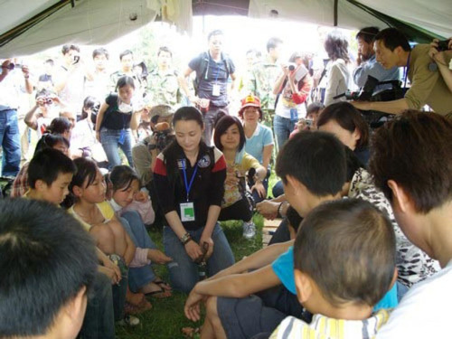 平時在國內很少表達自己情感的章子怡,為了災區人民,在戛納拒絕走紅地毯,并為慈善募款大哭,甚至厚著臉皮舉行募款酒會,令人感動。章子怡接受采訪時幾度落淚,然后以哽咽的聲音表示:“我昨晚在想,哪怕只有一個人來,我還是會把這件事情做完。”