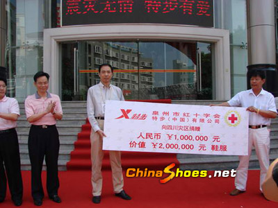 災情緊急,中國緊急,四川汶川地震牽掛著特步集團每個員工的心,5月14日,汶川地震的第三天,特步集團就緊急召開員工大會,舉辦向四川地震災區(qū)捐贈儀式,特步集團董事長丁金朝宣布,特步公司正式向災區(qū)捐贈100萬元人民幣和價值200萬元的運動服裝。