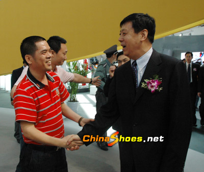 361°總裁丁伍號與晉江市長李建輝(右一)在一起