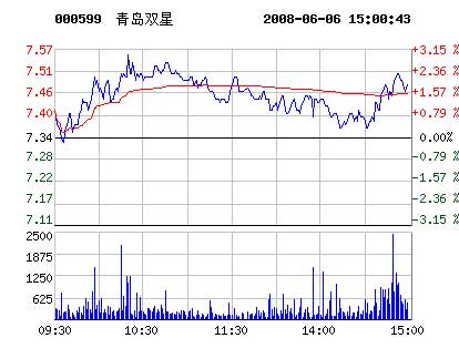 青島雙星6月6日股票價格走勢