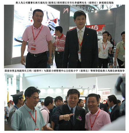 2008年5月29日,中國體育用品行業(yè)最高級(jí)別展覽會(huì)在北京國際會(huì)議展覽中心舉行。展會(huì)歷時(shí)4天,是目前亞太地區(qū)規(guī)模最大、最具權(quán)威性的行業(yè)展覽。眾多國內(nèi)外知名品牌齊聚一堂。現(xiàn)場最亮眼的展位之一當(dāng)屬來自福建晉江的體育運(yùn)動(dòng)裝備生產(chǎn)商--貴人鳥(中國)有限公司,“無人可擋”品牌口號(hào)的倡導(dǎo)者,中國贊助國家隊(duì)數(shù)量最多的運(yùn)動(dòng)品牌之一。