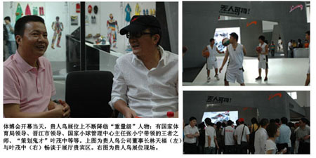 開幕儀式上,晉江市領(lǐng)導(dǎo)、國家體育局領(lǐng)導(dǎo)、國家小球管理中心主任張小寧先生及其率領(lǐng)的8支國家小球隊(duì)成員分別蒞臨貴人鳥豪華展館。據(jù)了解,貴人鳥與張小寧先生率領(lǐng)的這支王者之師在06年就有贊助關(guān)系。張先生贊賞貴人鳥林天福董事長大膽、敢為的王者風(fēng)范。并表示合作是雙方共贏之舉。除此,美國夢(mèng)7隊(duì)、國際田聯(lián)、著名巨星劉德華、張柏芝都跟貴人鳥有過密切地合作。品牌形象展區(qū)所有雕塑、紀(jì)念碑就是企業(yè)二十多年成長史最好的寫實(shí),是企業(yè)領(lǐng)導(dǎo)人與全體員工辛勤刻下的印記,是展示“無人可擋”氣魄的文化長廊。