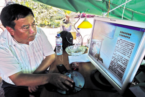 在安置帳篷內,葉志平在整理搜集關于學生安全教育的課輔材料。