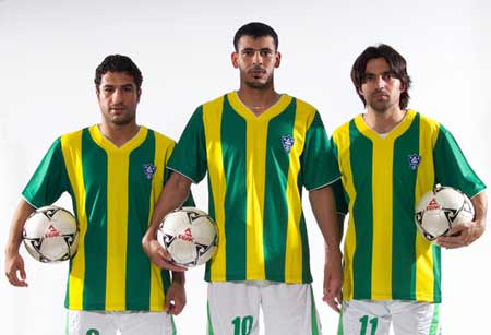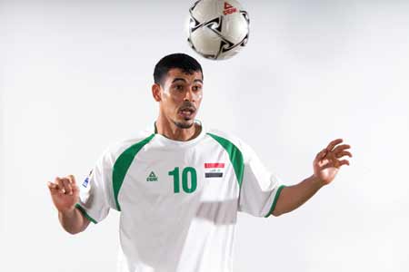 為保證伊拉克足球隊隊員的安全,匹克公司特意在伊拉克國家足球隊下榻的天津利順德飯店一個二樓的會議室,將之改裝成了攝影棚。還好,空間和設施都不錯,加之水果美餐,尤尼斯和另外兩位隊友拍攝起來,情緒一直很好。作為07年亞洲杯最佳球員,尤尼斯目前在亞洲也算個“腕了”,但是鏡頭面前的他,在做完規定動作后,總是愛做幾個自認為很酷的動作或者表情,歡樂一直充滿了整個拍攝過程,完全體驗不到大賽來臨前的凝重氣氛。