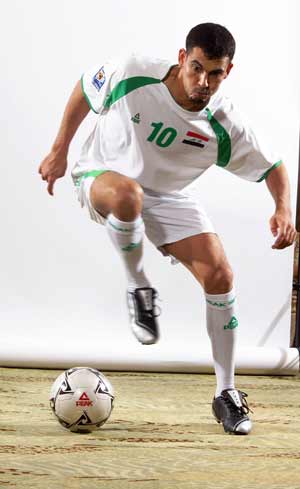 正當中國隊積極備戰6月14日的中伊之戰時,遠道而來的伊拉克足球隊卻在訓練之余,逛起了街,上街購物和領略天津的城市風情,一派輕松備戰的休閑之心。這不,還為贊助商匹克公司拍起了廣告,球隊核心10號尤尼斯每每在拍攝一番自認為姿態極佳的鏡頭后,就要到攝影師的相機上,自我欣賞一番。