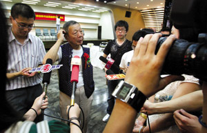 6月12日,香港藝人午馬在大型電視系列劇《溫商風云錄》開機現場接受采訪,他在該劇中扮演一鞋業老板的師傅。當天,由溫州華商影業有限公司投拍、法派集團協拍的《溫商風云錄》在法派集團工業園區舉行開機儀式。該劇是我國第一部以區域商界為關注對象的故事型電視系列劇。本報記者 陳侄輝 攝