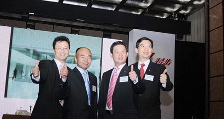 9點40分,特步集團董事局主席丁水波先生帶領公司高管在泉州開發區黨委書記、港交所上市委員會委員、港交所上市科科長的陪同下步入交易大廳中央講壇,并發表簡短而熱烈的上市演講……