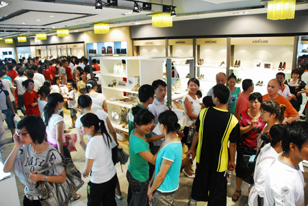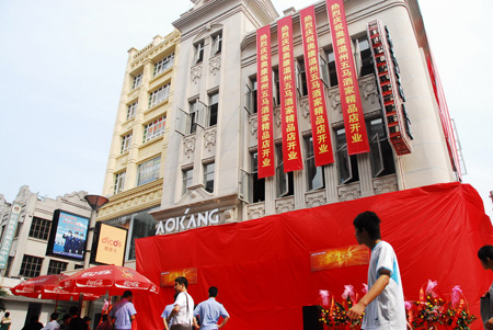 6月22日,奧康集團在溫州中心商業圈五馬街開設的占地面積200多平方米奧康“豪華”鞋店正式營業,該店地處五馬街廣場,原溫州酒家地址所在,是五馬街的黃金地段,主要經營奧康品牌。這是該企業在溫州洪殿開設占地1000多平方米社區大店以來,一次“大手筆”打造中心商圈的“豪華”鞋店。開業當天,顧客蜂擁而至,場面火爆。