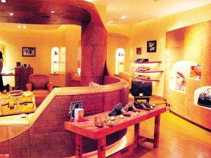 新店面積兩百余平方米,內(nèi)部設(shè)計(jì)全部出于Berluti設(shè)計(jì)師之手,大量的小牛皮運(yùn)用到座位和屋頂?shù)难b潢。首次進(jìn)津還帶來了三款新品,分別是將膠底的狼爪印記雕刻嵌入了皮革鞋底;引入捕夢(mèng)網(wǎng)編織手藝以及圓滑的皮線跨越鞋身琴弦風(fēng)格的三款男鞋。