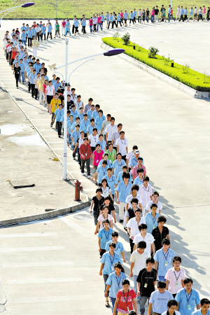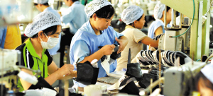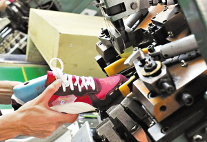 這是一個(gè)有6000人的大廠,不例外地生產(chǎn)著許多名牌運(yùn)動(dòng)鞋。車間空間大而潔凈,室外風(fēng)很大,加上電扇不停運(yùn)轉(zhuǎn),沒(méi)有鞋廠刺鼻的膠水味。我對(duì)鞋廠并不陌生。1990年,一位好友因故輟學(xué),學(xué)電子技術(shù)的他不得已南下自謀生路,在一家臺(tái)資鞋廠打工。雖說(shuō)是勞動(dòng)密集型企業(yè),但工資是一個(gè)“正規(guī)分配”進(jìn)機(jī)關(guān)或事業(yè)單位的應(yīng)屆大學(xué)畢業(yè)生收入的8到10倍。那時(shí)候的鞋廠,是率先登陸大陸市場(chǎng)的“三來(lái)一補(bǔ)”大軍中的主力兵種,用了十多年之后才出現(xiàn)的一個(gè)新詞語(yǔ)來(lái)表述,堪稱“先進(jìn)生產(chǎn)力的代表”。