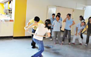 ②員工宿舍里玩呼拉圈,下班后的運(yùn)動(dòng)。