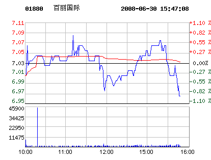 百麗國際6月30日股票價格走勢