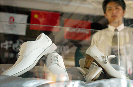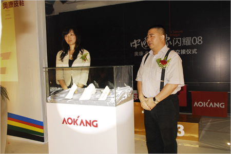 7月1日,由北京2008年奧運會皮具產品供應商奧康集團承接制作北京2008年奧運會禮儀用鞋順利交接到奧組委手中。此次禮儀用鞋的順利交接標志著溫州鞋無論從款式設計、產品質量還是品牌美譽都得到了國際認可,并代表了中國形象。
