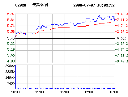 安踏體育7月7日股票行情走勢