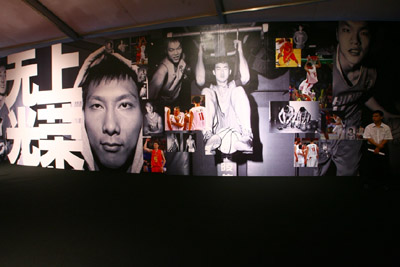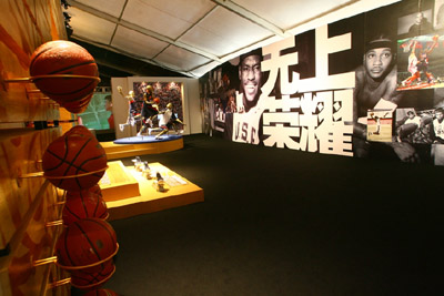 進入展區印入眼簾的將是兩幅油畫,以科比、易建聯作為油畫的主角直接反映出本次展覽的主角——中美兩隊的運動員。而緊接在油畫后,美國隊的科比、詹姆斯、保羅、基德和安東尼以及中國隊的易建聯、杜峰、陳江華、丁錦輝、朱芳雨等10位籃球明星的真人等大模型矗立一旁,組成現場兩支正在拼殺的強大陣容,讓前來參觀的籃球迷們拍手稱贊。
