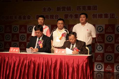 在續簽現場,中國航天基金會秘書長霍廣耀將軍對匹克進行了授牌,隨后,“中國企業航天營銷高峰論壇”也一并舉行,來自國內學院界、營銷界、企業的代表紛紛對企業如何開展航天營銷給予積極探討。作為國內運動品牌國際化的先鋒代表,匹克20年來在運動行業積累了深厚的產品及銷售基礎,05年啟動國際化之后,相繼贊助斯坦科維奇杯在內的多項國際賽事,彰顯了強大的品牌實力。這一切得到了航天部門專家的認可,同年9月,匹克第一次成為中國航天基金會的合作伙伴,并簽訂了3年合同,先后為酒泉、西昌兩個發射中心分別捐贈價值百萬以上的運動鞋服。在神六飛天期間開展了“穿匹克 助航天”促銷活動,匹克品牌形象及民族情感獲得巨大提升。而匹克一直以航天品質打造匠師級別的體育產品,在05年首次簽約后,匹克利用火箭三級助推原理,自主研發出行業領先的“匹克Pkrocket三級減震技術”,并大量應用于代言人NBA火箭隊肖恩·巴蒂爾及“戰神”劉玉棟比賽專用鞋等產品上。本次簽約,匹克將于中國航天續約5年,將共同經歷“神七載人飛船”發射等一系列的航空活動,這對匹克來說更是具有了里程碑式的巨大意義。