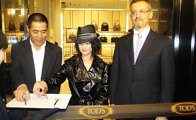 周濤、周迅、Mauro malta為青島TOD’S店開業(yè)剪彩
