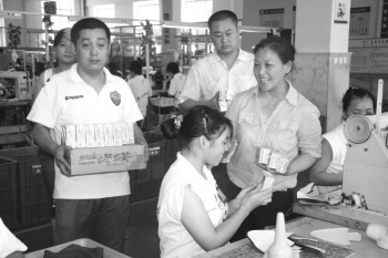 “來,先喝點涼茶,天氣太熱了,別累壞了。”近日天氣炎熱,每天下午2點至4點,奧康集團為生產車間員工提供涼茶、綠豆湯等冰涼飲品。該公司還推出發放防暑藥品、在車間安裝大風扇等措施,以做好防暑降溫工作。