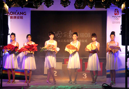 日前,由北京2008年奧運會皮具產品供應商奧康集團承接制作的北京2008年奧運會禮儀用鞋順利交接到奧組委手中。據悉,本次交接儀式中所展現的禮儀用鞋共分男、女兩種款式,分別用于開、閉幕式以及頒獎時禮儀小姐和旗手的禮儀裝備。