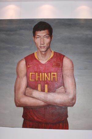 整個展出分為三個部分,第一館是中國男籃國家隊(duì)的球員雕塑以及球衣、球鞋、比賽用球展示。而在墻上掛著的是易建聯(lián)的大幅油畫。不少球迷都紛紛前去與“阿聯(lián)”合影。