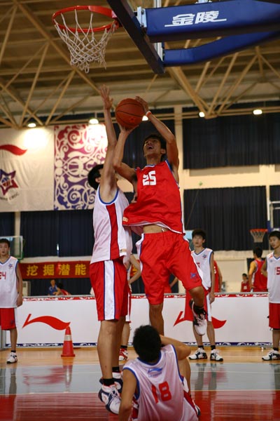 在27日的訓練中,中方教練組的安排主要是以個人的技術訓練為主,被分為四組的隊員們分別練習了不同的進攻技術。別看隊員們年紀都不大,可是執行起教練的安排來卻一點也不含糊。他們不但能很快理解教練的意圖,而且動作完成得質量也都很高。訓練場內,加油聲和運球聲此起彼伏,認真指導的教練和努力奔跑的球員也形成了一道美麗的風景線。特別是在快攻訓練中,總教練張勇軍鼓勵隊員們用扣籃結束進攻,而小伙子們也絲毫不吝惜自己的彈跳和激情,一個又一個地在球場上騰空而起,用最自己最精彩的動作將球砸進籃筐。