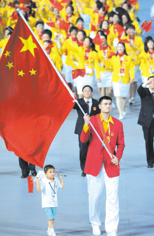 昨晚9萬多現場觀眾最亢奮的時刻當數中國代表團入場。中國隊還沒出現,看臺上就發生了異動,當姚明舉著國旗出現時,全場歡聲雷動。