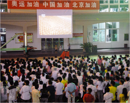 昨晚8點(diǎn),世界矚目、萬眾期待的北京奧運(yùn)會(huì)正式拉開大幕,全國(guó)13億人的愛國(guó)熱情在瞬間被圣火點(diǎn)燃。奧康總部3000多名員工齊聚在生活小區(qū)廣場(chǎng)上,一起見證了這激動(dòng)人心的時(shí)刻。