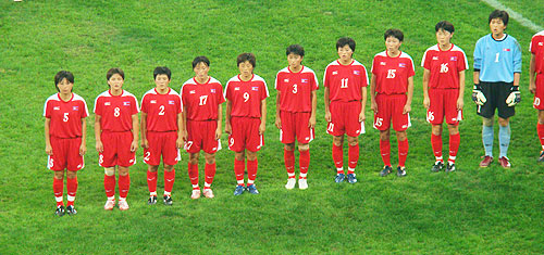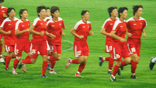 雖然是第一次參加奧運會,并且被分到公認的“死亡之組”,但一向以驚人的體能和頑強的斗志著稱的朝鮮女足依然顯示出強大的信心。隊長李金淑表示:“朝鮮女足參加奧運會的目標只有一個,那就是奪金。”昨天,朝鮮女足一行26人已經抵達賽地沈陽,為奧運會進行最后的備戰。