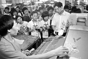 “嘿,這些小家伙們還真有點專業水準。”聽到小記者有針對性地提出各式各樣的問題,正在車間操作針車的叔叔阿姨們贊不絕口。